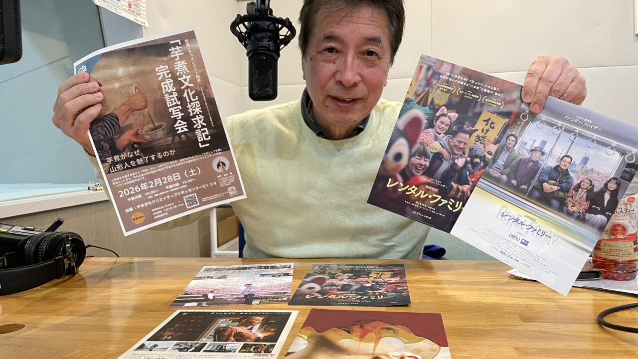 新作紹介 【新作紹介】「レンタル・ファミリー」【山形映画情報】「芋煮文化探求記」菊地翼 監督 2026/2/20 O.A cinema-alive 2026年2月20日 / 2026年2月20日 2月20日放送① 【新作紹介】 レンタル・ファミリー 27日から公開! 【監督】 HIKARI 【出演】 ブレンダン・フレイザー/平岳大/山本真理/柄本明/ゴーマン シャノン 眞陽 レンタル・ファミリー ご紹介しました! M: ヨンシー&アレックス・ソマーズ 「ファウンド・ファミリー」 ※「レンタル・ファミリー」サウンドトラックより レンタル・ファミリー HP レンタル・ファミリー2月20日放送② 【山形映画情報】 芋煮文化探求記 2月28日に完成披露試写会を迎えますドキュメンタリー作品「芋煮文化探求記」のメガホンを取られた、山形市在住の映像作家「菊地翼」さんにお話を伺いました! 芋煮文化探求記 イベントHP 芋煮文化探求記 cinema ブレンダン・フレイザー レンタル・ファミリー 映画 芋煮 芋煮文化探求記 菊地翼